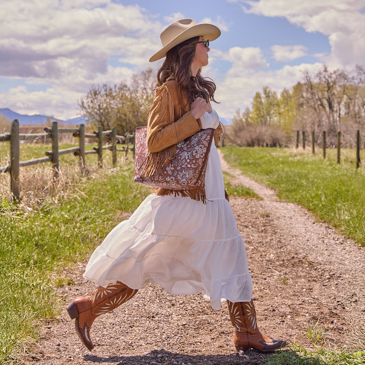 She’s all that and a bag of chips! This carry-all tote is for when your hands are full. but your life is fuller. Laptop? Slip it in. Your wallet? Add that too. A bag of literal chips? This tote can carry it all. Now in our Country Road Bloom coated canvas. this bag reflects the spirit of adventure.