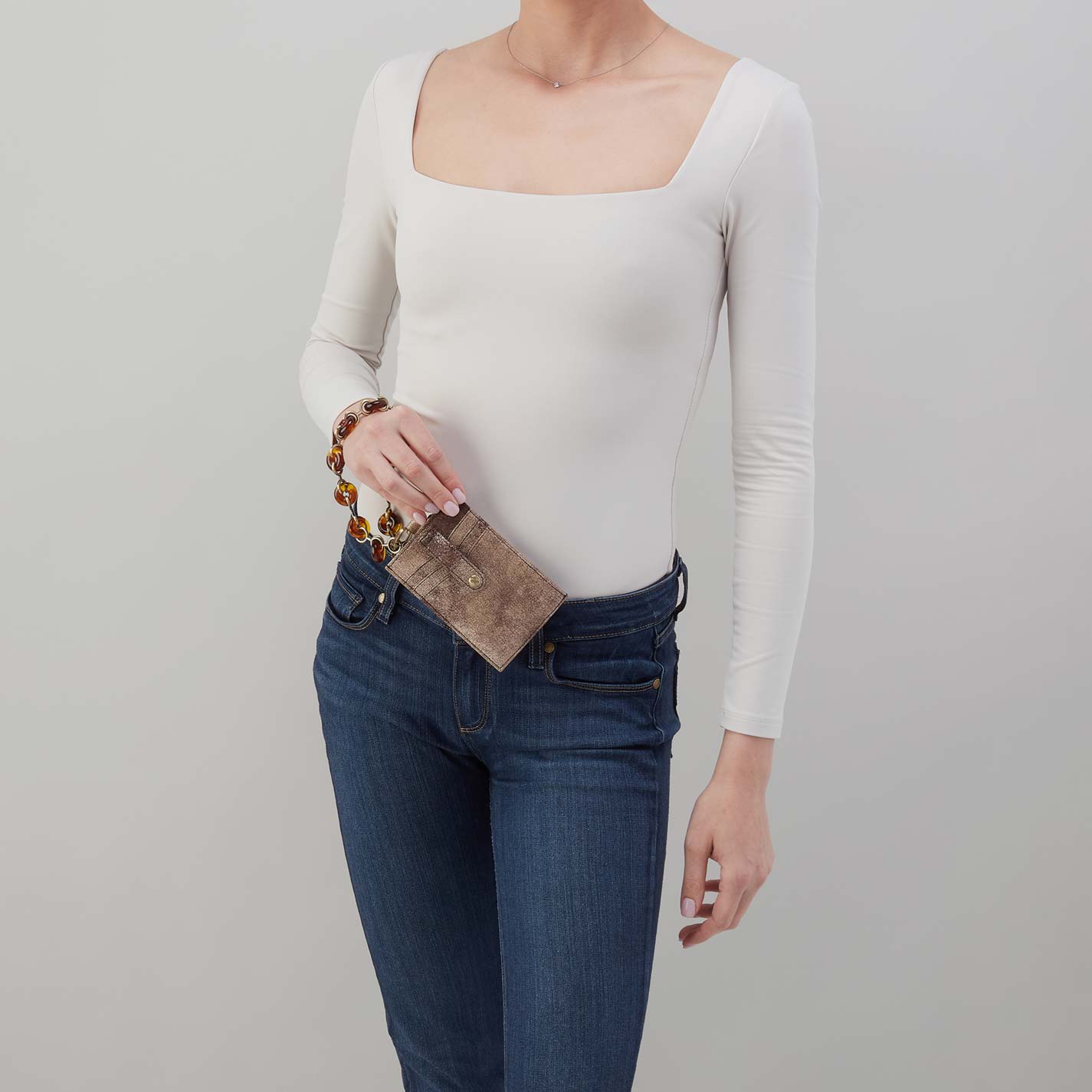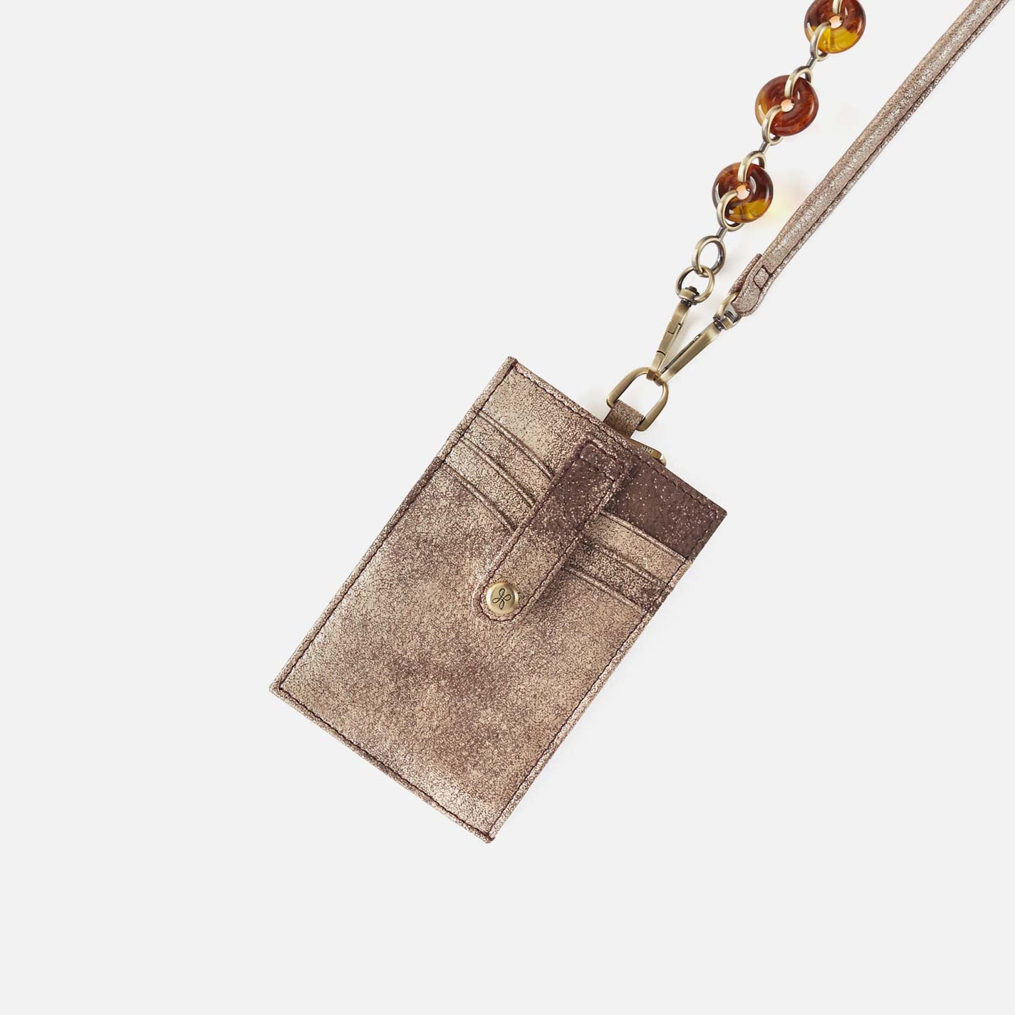 Around Town Lanyard in Metallic Leather – Cocoa Platinum