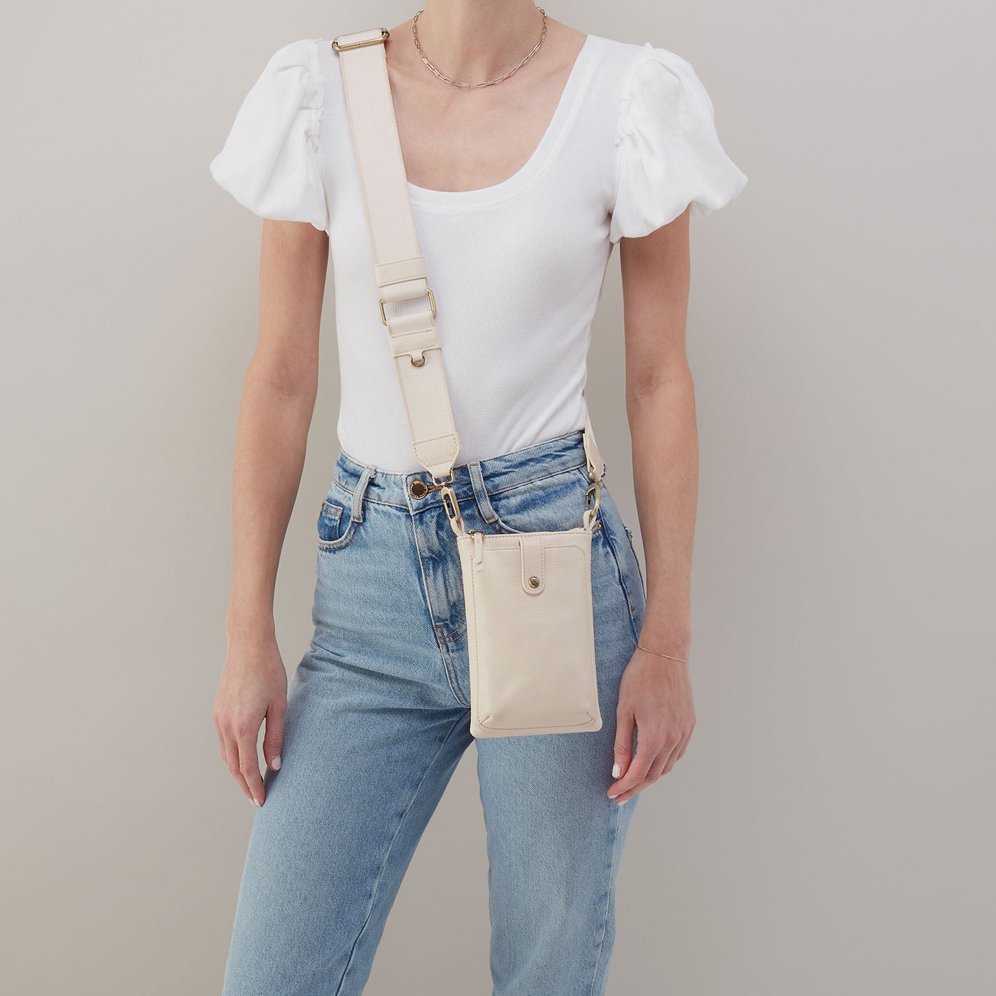 Cass Phone Crossbody In Pebbled Leather – Cream