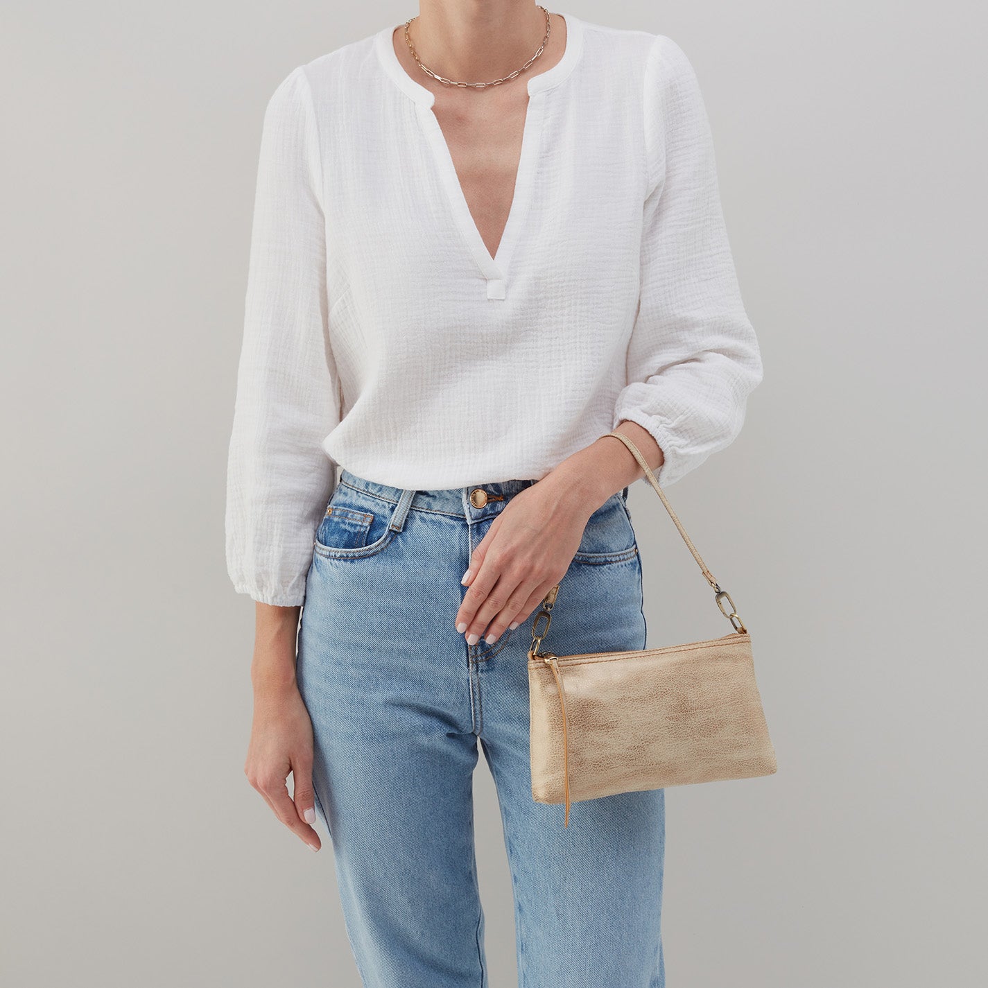 Darcy Crossbody in Metallic Leather – Gold Leaf