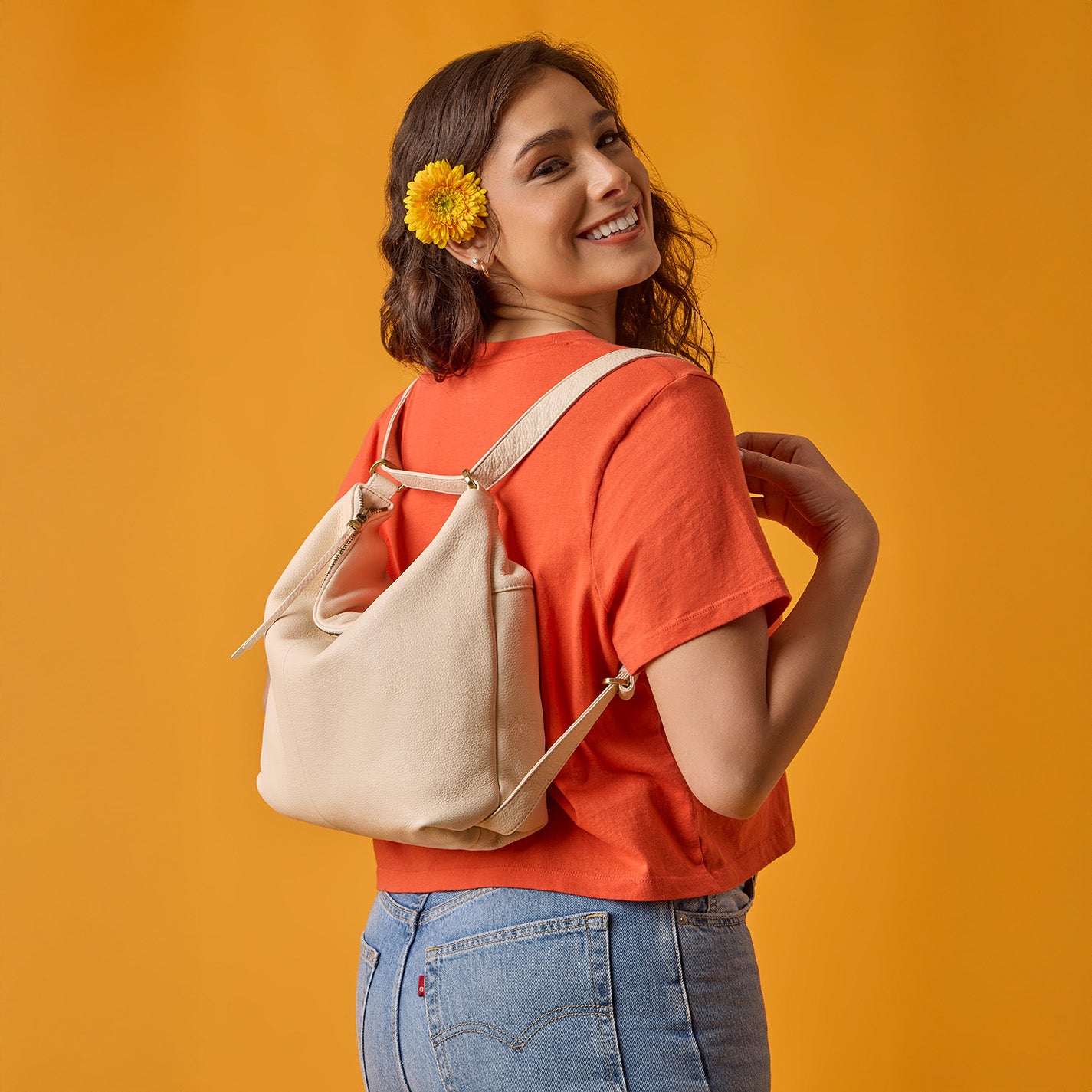 Backpack or shoulder bag—all with a simple tug of the straps. Emily is the ultimate convertible bag. designed to keep up with your nonstop day. From drop-off to the desk to dinner with friends. she changes as quickly as your day does. Soft. durable leather holds up day after day. while hands-free carry means you’ve got this!