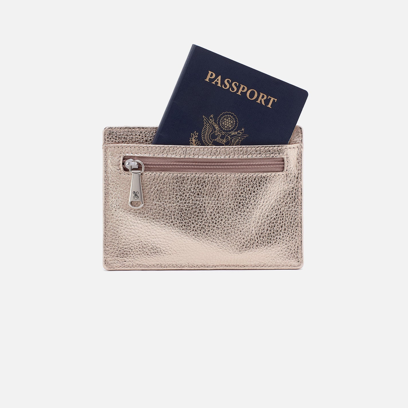 Euro Slide Card Case In Metallic Leather – Cameo Quartz