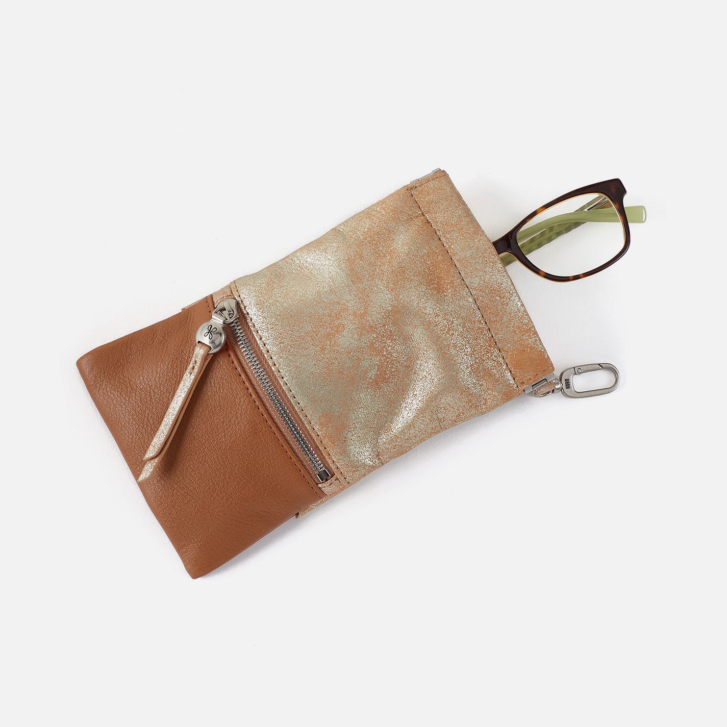 Facile Eyeglass Case In Metallic Leather – Saddle Stardust