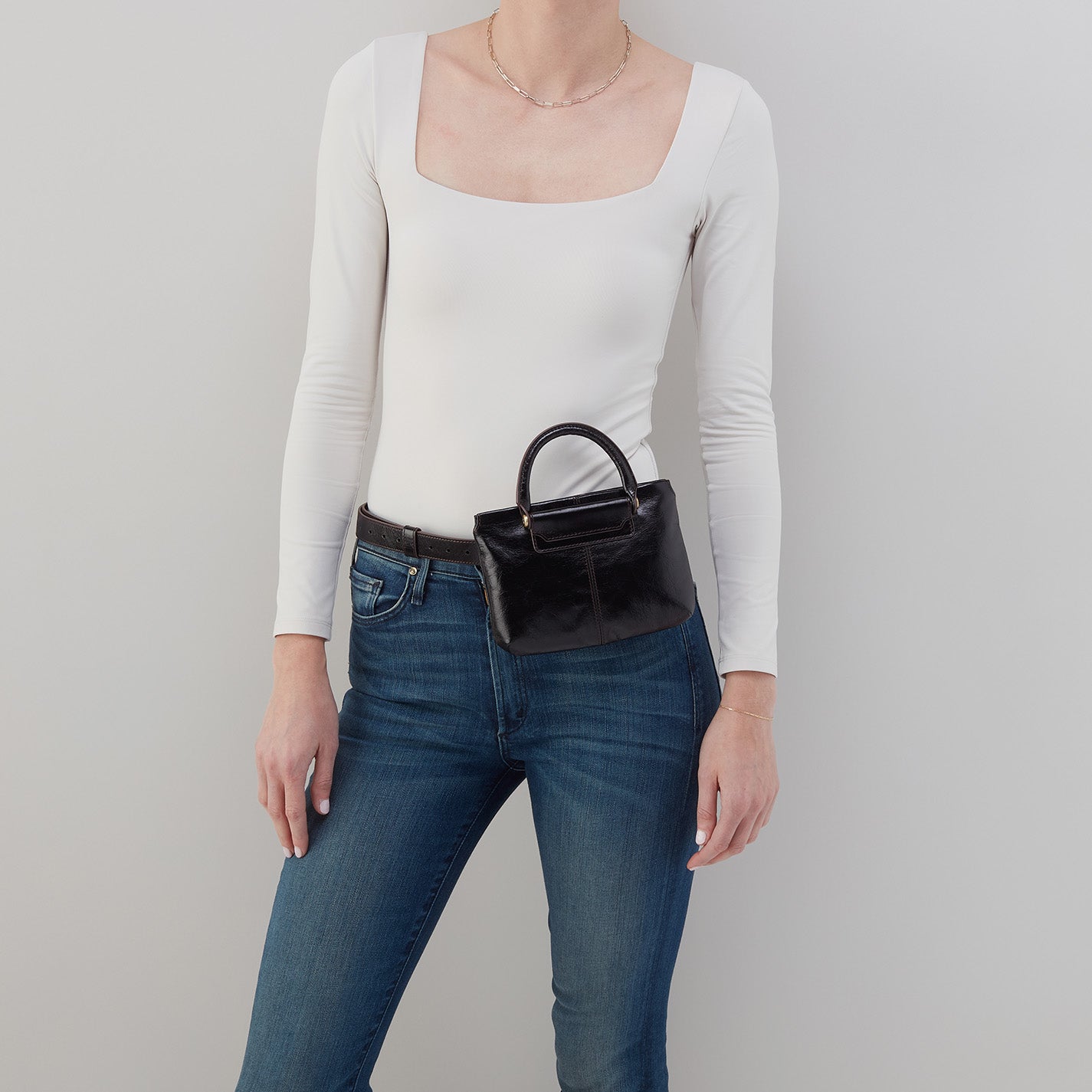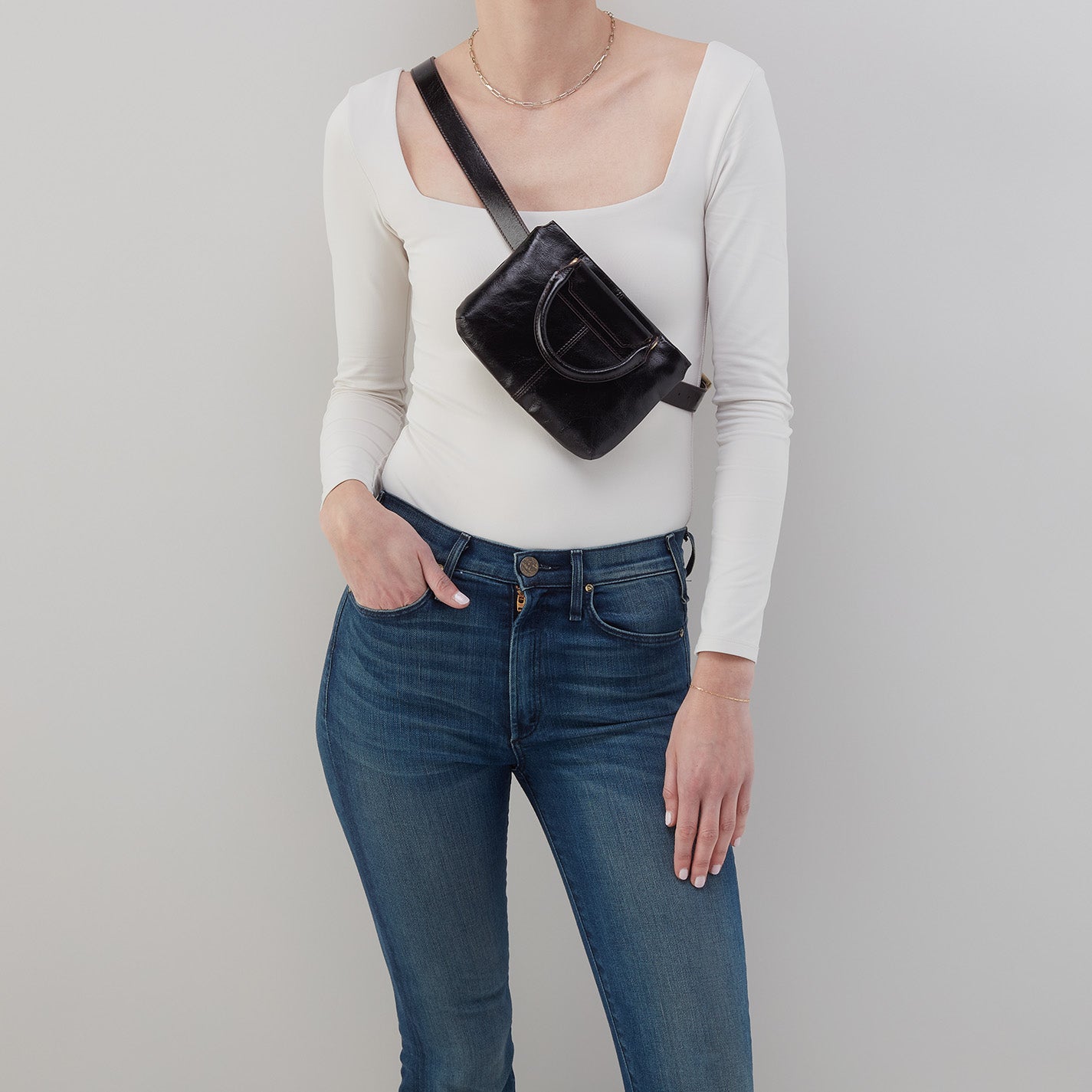 Sheila Belt Bag In Polished Leather – Black