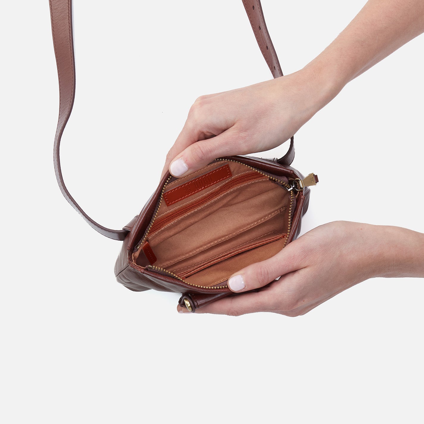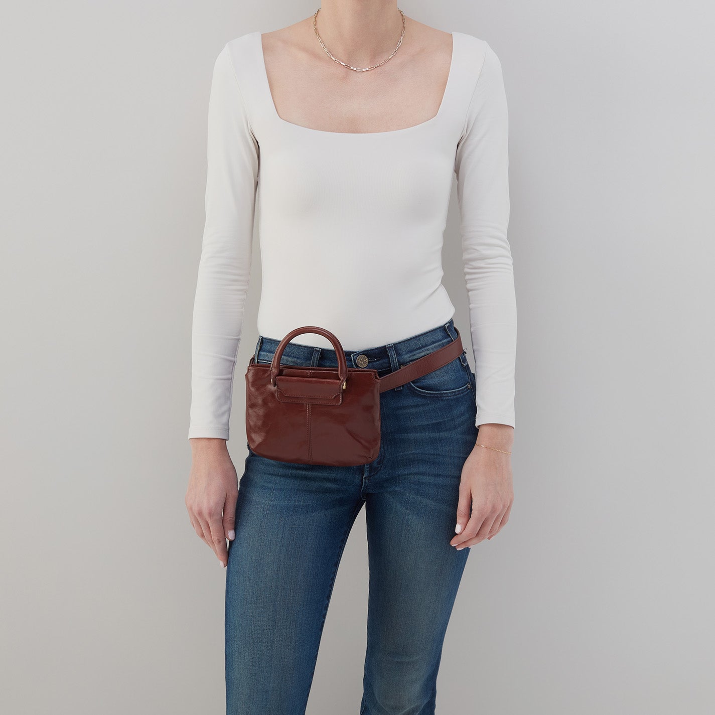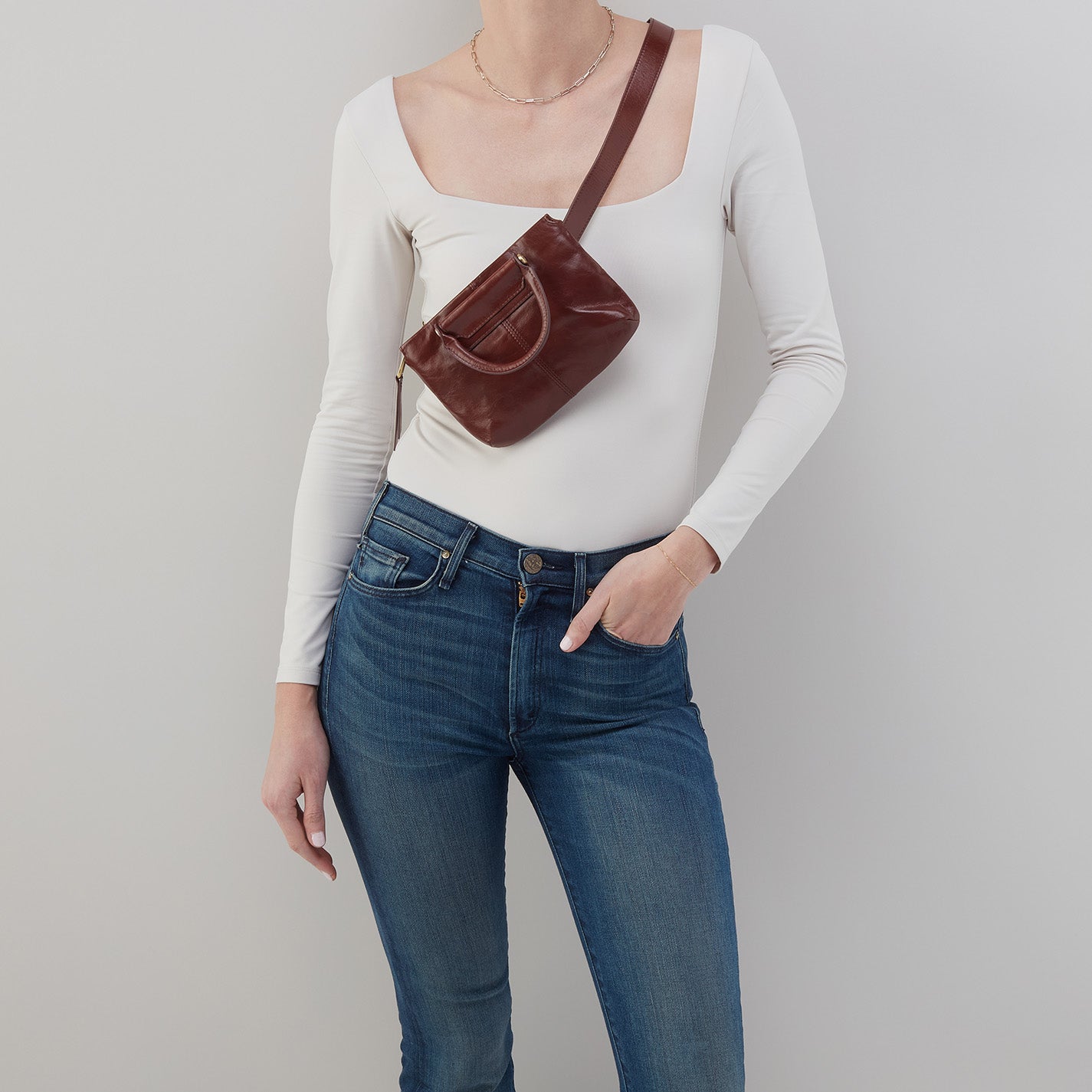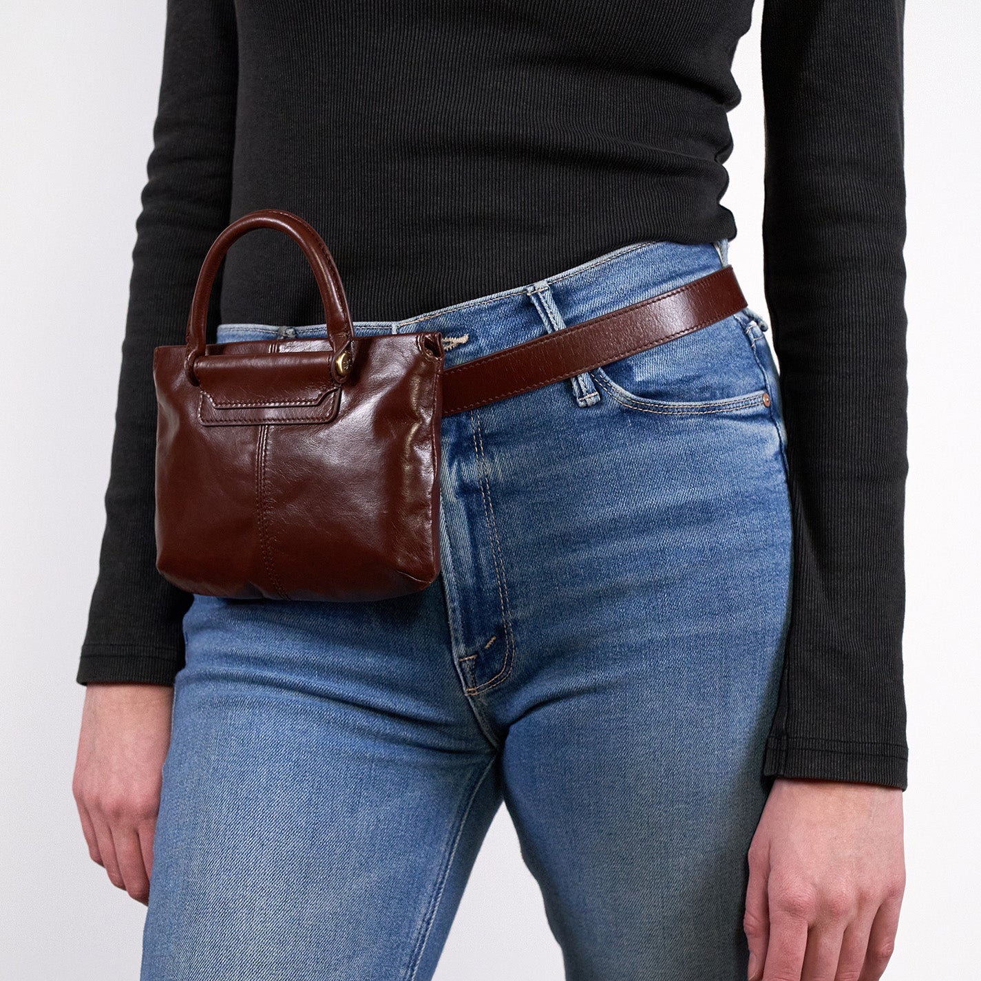Sheila Belt Bag In Polished Leather – Chocolate