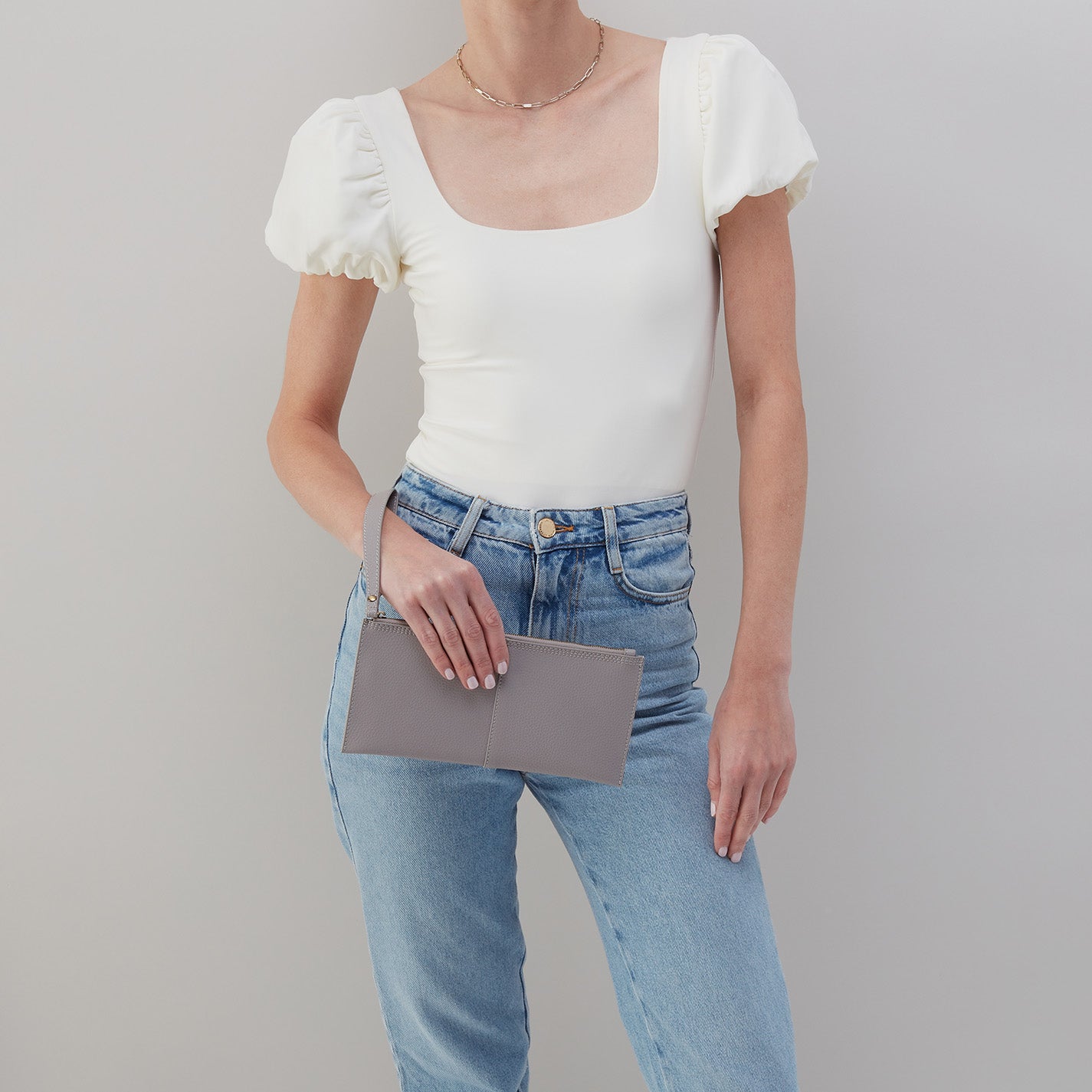 Vida Large Pouch in Micro Pebbled Leather – Morning Dove Grey